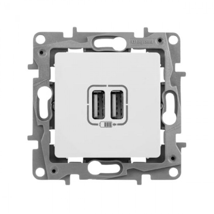 Описание Розетка 2хUSB Legrand 240В/5В 2400мА серии Etika. Цвет Белый.